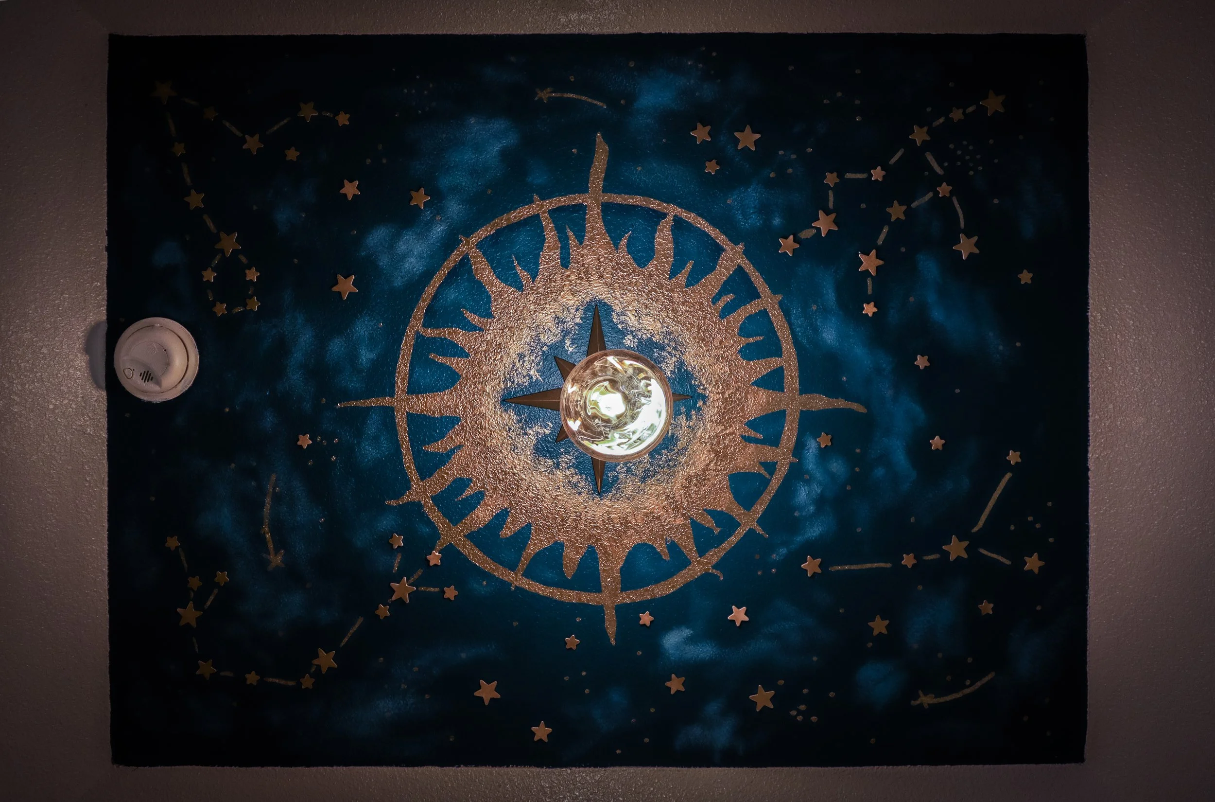Celestial Ceiling Mural: Exploring the Stars The Celestial Ceiling Mural was created to bring a revamped take on a traditional style and add eye-catching interest to this home’s vaulted ceilings